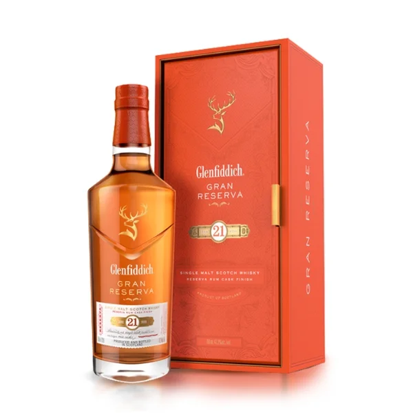 Glenfiddich 21 Year Old Gran Reserva 700 ML גלנפידיך 21 שנה גרנד רזרבה הוא סינגל מאלט סקוטי נדיר ומפואר, המיושן